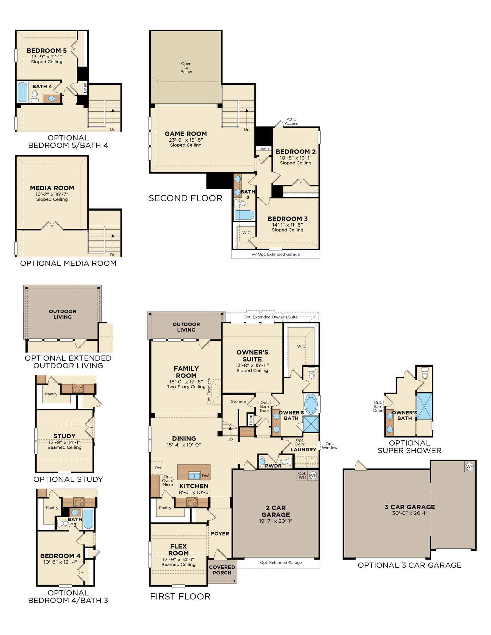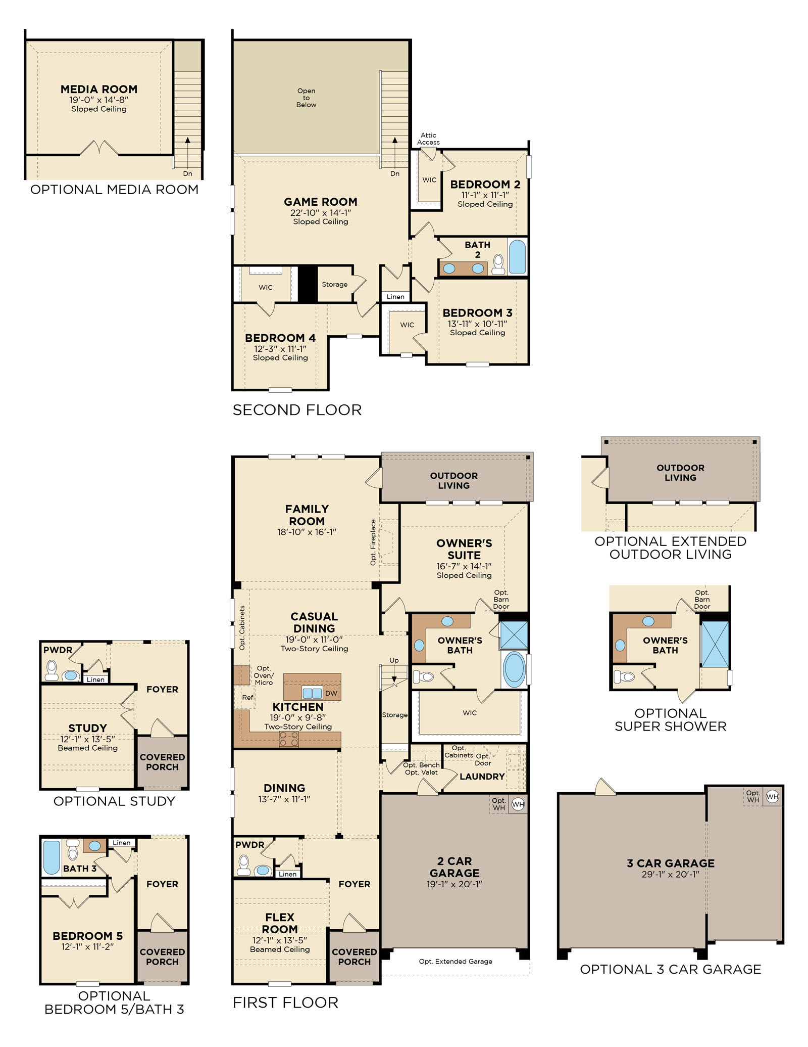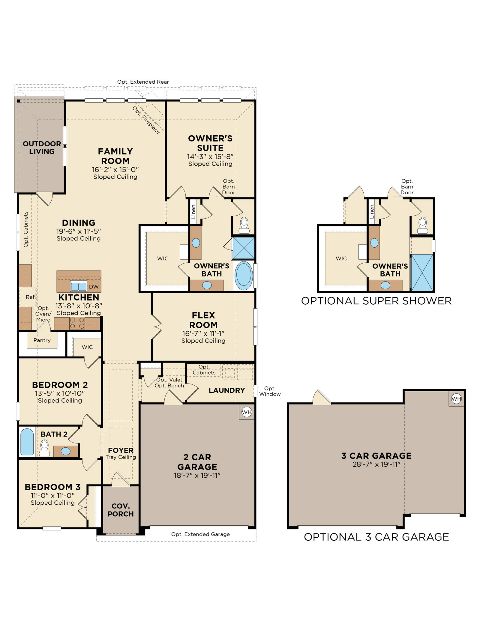 Vast open concept living & dining with fireplace. Upgraded Super Shower. Three-car garage.